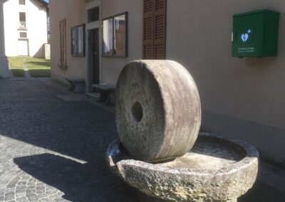 La tradizione ricorda il frantoio adibito alla produzione di olio di noci. La coltivazione del noce era ben presente nel villaggio, come attesta il Lavizzari che nel 1863 segnala la presenza di «maestosi noci». Le noci erano raccolte in ottobre e messe poi a seccare su dei graticci al sole. In inverno venivano spaccate e i gherigli separati dai gusci. È a questo punto che entrava in azione il frantoio che, grazie alla macina azionata da robuste braccia, riduceva i gherigli in una massa farinosa e oleosa che veniva riscaldata fino a quando cominciava a colare l’olio. L’impasto veniva allora avvolto in un telo e passato al torchio due volte. Si calcola che 12-14 kg di gherigli forniscono da 7,5 a 8,5 litri di olio. La parte solida che rimaneva veniva data ai bambini da sgranocchiare o veniva macinata per farne una farina usata per la preparazione delle torte. L’olio era utilizzato soprattutto per l’illuminazione, ma probabilmente serviva anche in cucina come condimento.