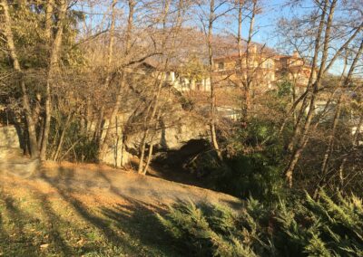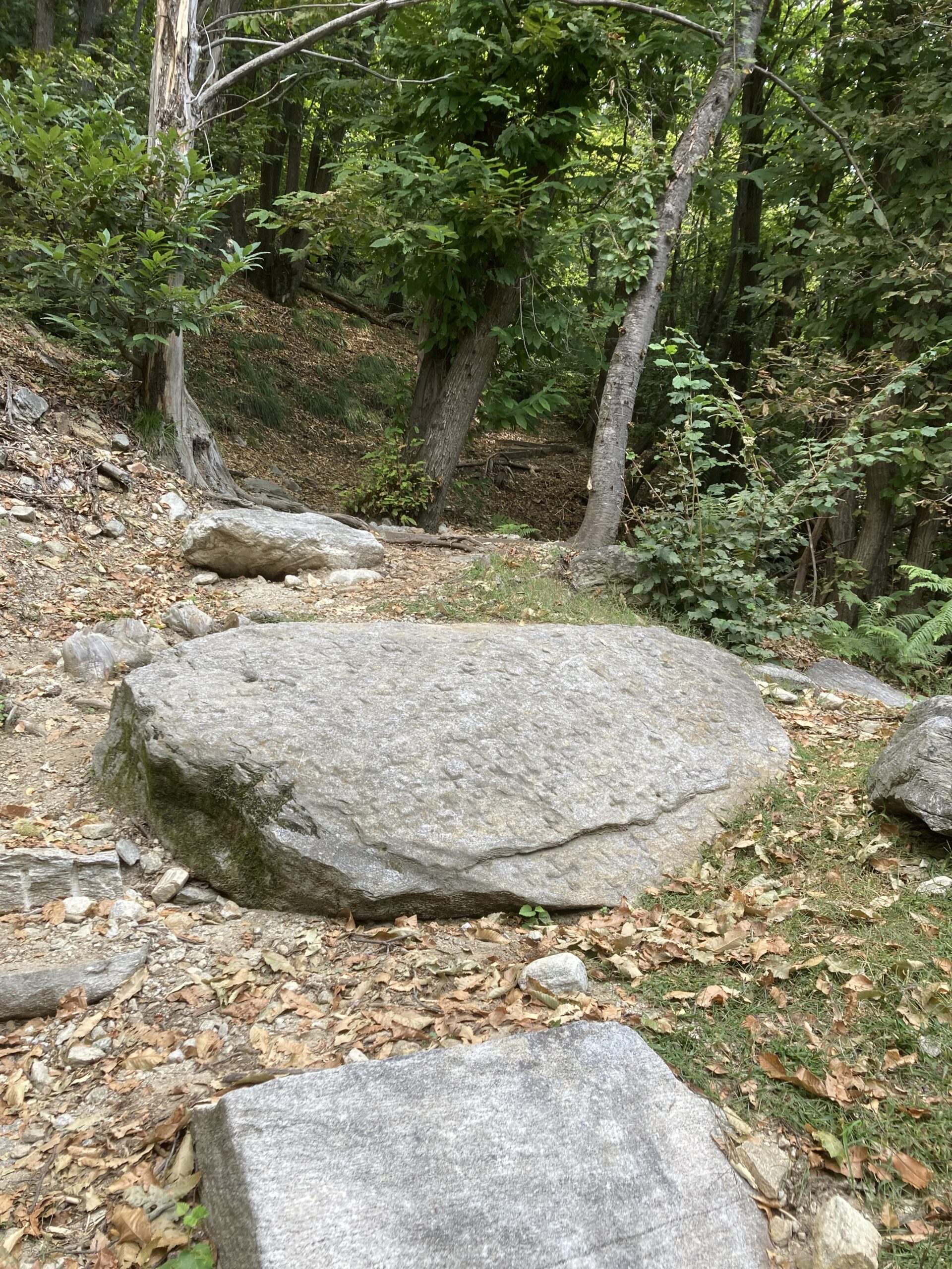 Accecato dall’ira, decise di distruggere il villaggio. Si mise all’opera e, giunto sulla collina sopra Contra, si guardò intorno alla ricerca di un modo per portare a termine il compito. Notò allora un enorme masso, se lo caricò sulle spalle e si avviò verso il villaggio.
